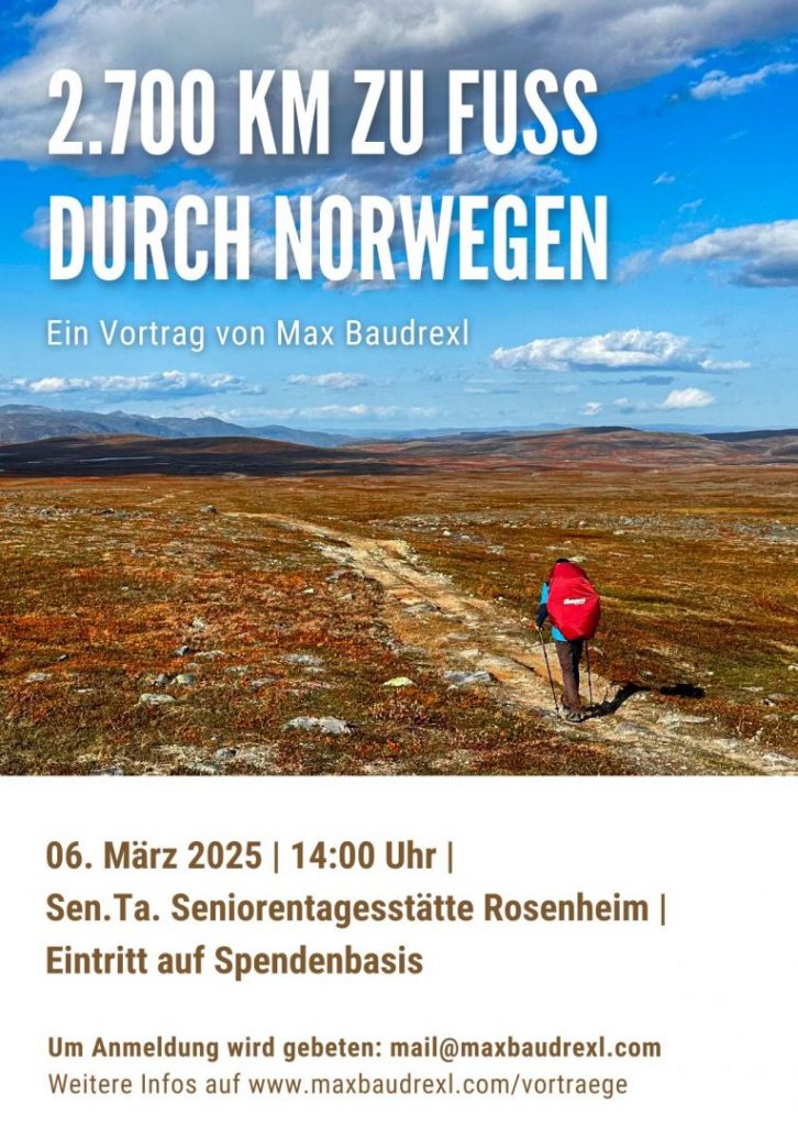 In meinem Vortrag nehme ich mein Publikum mit in die norwegischen Fjells und die unendlichen Weiten der nordischen Natur. Ich berichte offen und ehrlich von meinen Höhen und Tiefen, von meinen Zweifeln und Freudentränen.